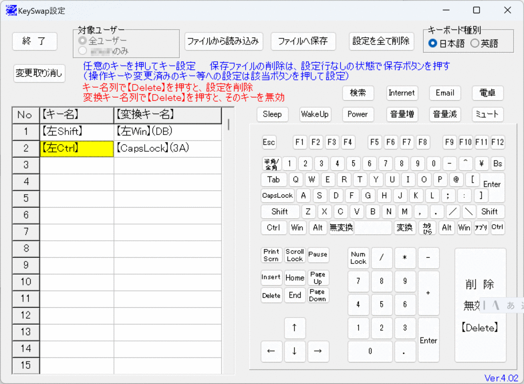 元のキーがこうだった、とわかるように使用頻度の低いCtrlキーに残しました。