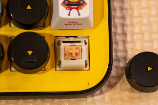 単調なリズムで押すことになりがちな上記のキーについて、クリッキーだと耳障りな気がしたので採用しました。。