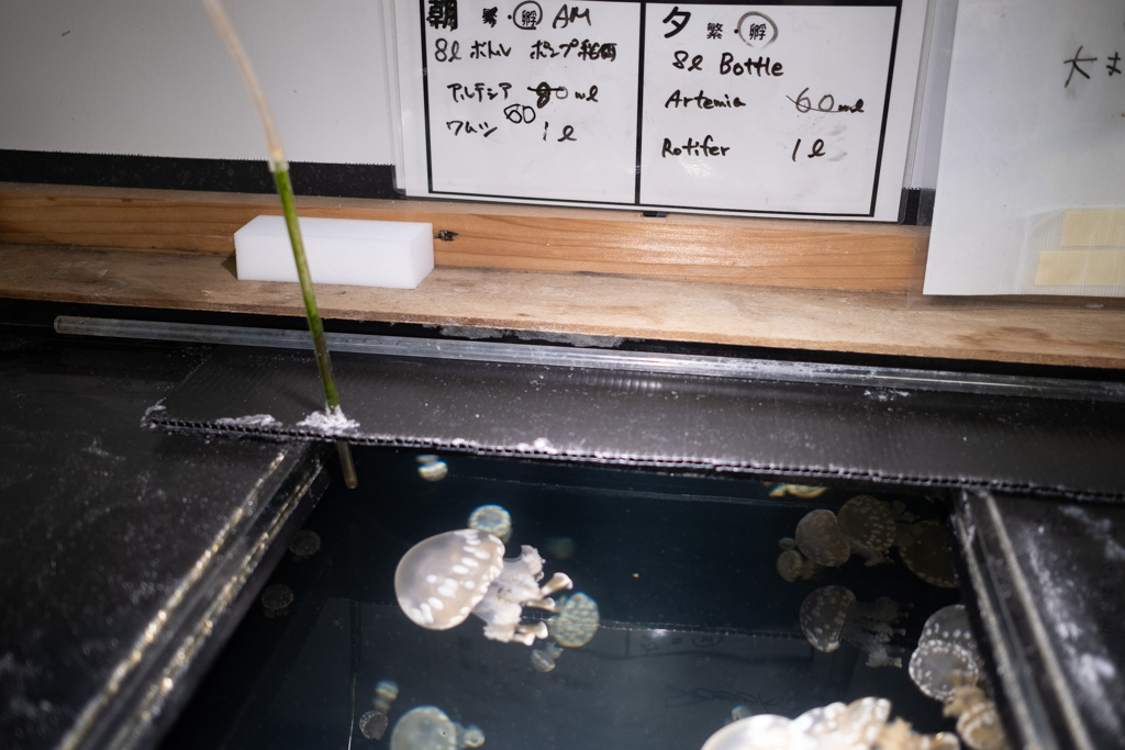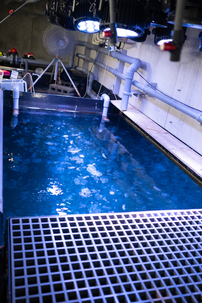 バックヤードツアーではこの水槽の上側だったり、クラゲ管理の一端を垣間見ることができました。
