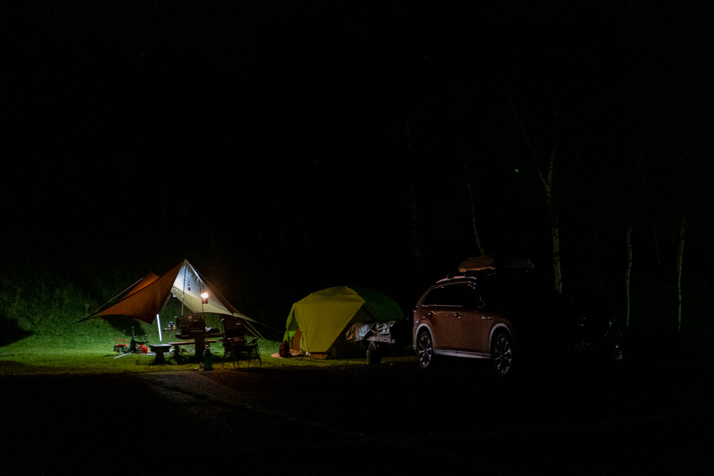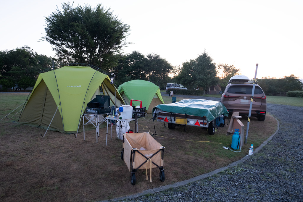 ちなみに今回は観光がメインなのでキャンプ地は贅沢にオートサイト(車がそばに止められるので荷物を運ばなくて良い)、しかも電源付きです。